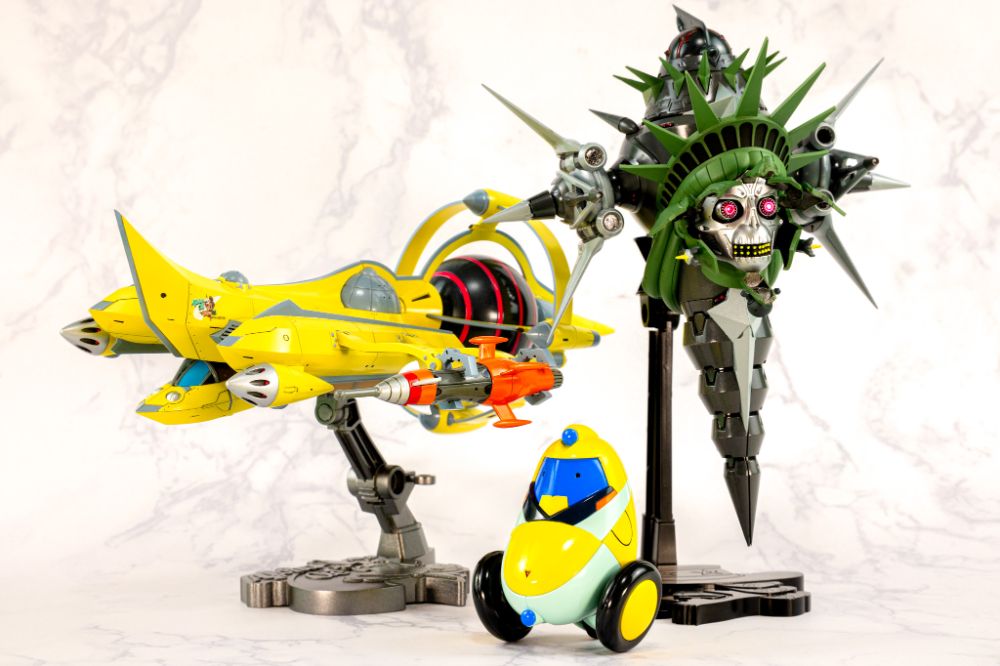 「アロハオエ号」(ダンディの宇宙船)、「カーネギーレモン」(ゲル博士の宇宙船)、「QT」(万能ロボット)。各アイテムは、フォルムやディテールをはじめ、作品ならではのポップさとハードボイルドな雰囲気まで丁寧に再現しました。