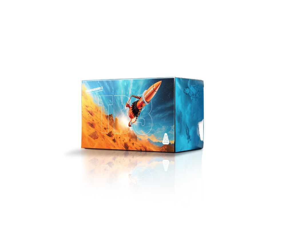 アラン・トレーシーが操縦するサンダーバード3号は、宇宙ミッションに対応する究極のレスキュー機 ― 強力で信頼性が高く、星間任務にも即応可能。全長約146mmで、コレクターに優しい透明パネル付きのディスプレイボックスに収められており、箱から出さずにそのまま飾ることもできます。サンダーバード1号・2号と並ぶラインナップの一種であり、今後は4号・5号のモデルも登場予定です!