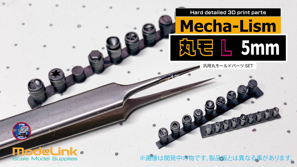 Lサイズは5mm穴に嵌まる外形4.9mmサイズ、ドリルで穴を開けるだけで簡単にディテールを追加できます。
