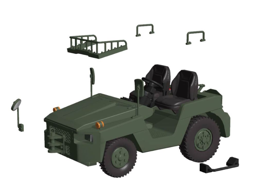 1/48スケールで2t牽引車が登場!最新の3Dプリント技術で細部まで精密に再現。シャープなディテールとリアルな質感が、あなたの模型をワンランクアップさせます。パーツは塗装色ごとに分割されているので、サポートを切り離して塗装するだけのお手軽さ。ライト類はクリアレジンにて造形、各所ラックや手すりなどオプションで選択可能。詳細なデカールも付属します。