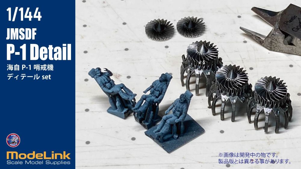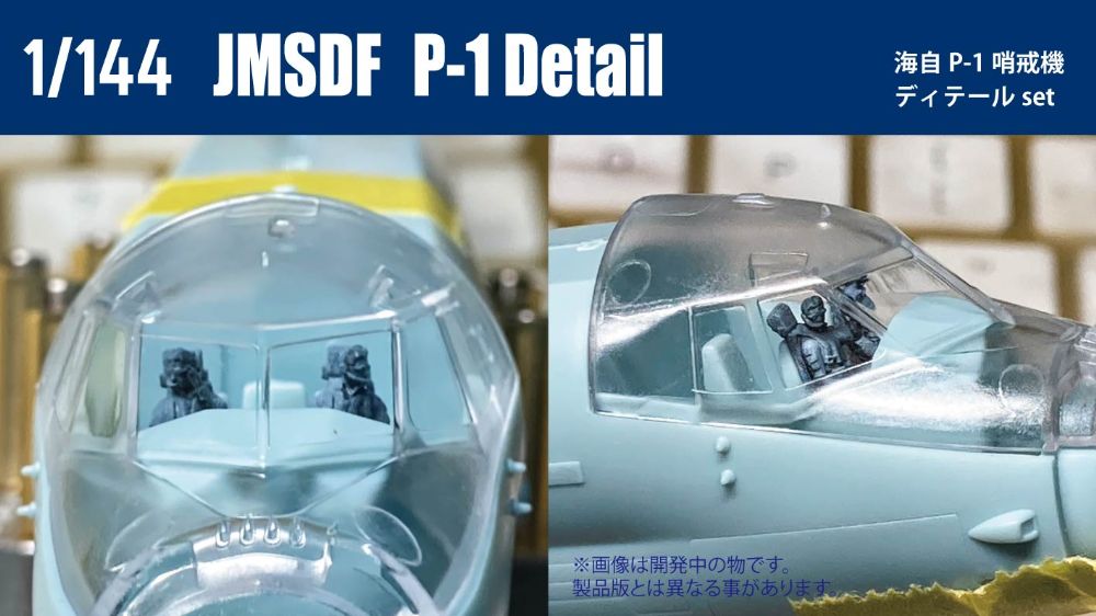 1/144 海自の哨戒機、P-1用のディテールパーツセット。パイロットフィギュアx4体、エンジンファンx4、機内収納式のタラップをセットしました。大きくて透明度の高いクリアパーツ越しに見えるパイロットが臨場感をアップします。タラップ組み込みには一部キットパーツの加工が必要です。3Dモデル設計: Mach3 Models