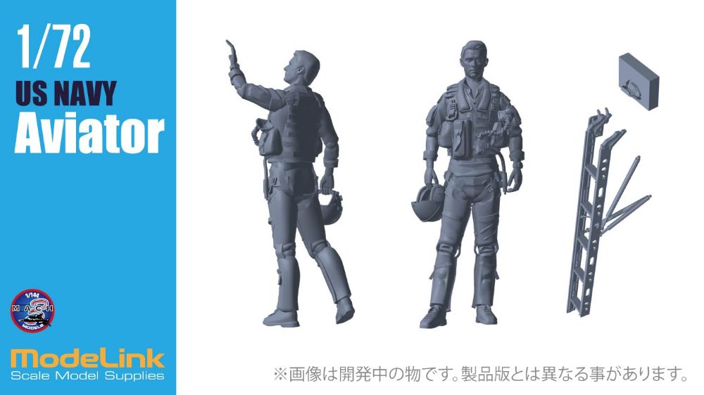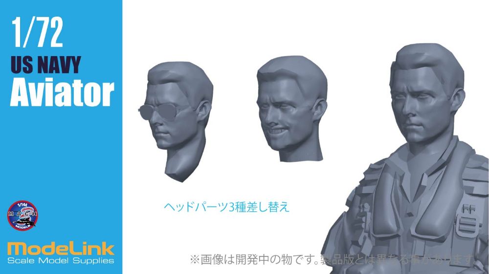 1/72 NAVY パイロット 2体セット。ヘッドパーツは3種から選べます。トムキャットやホーネットの演出用に完成品に添えて下さい。おまけとしてF/A-18EF用のラダー/ハンドルパーツが付属。