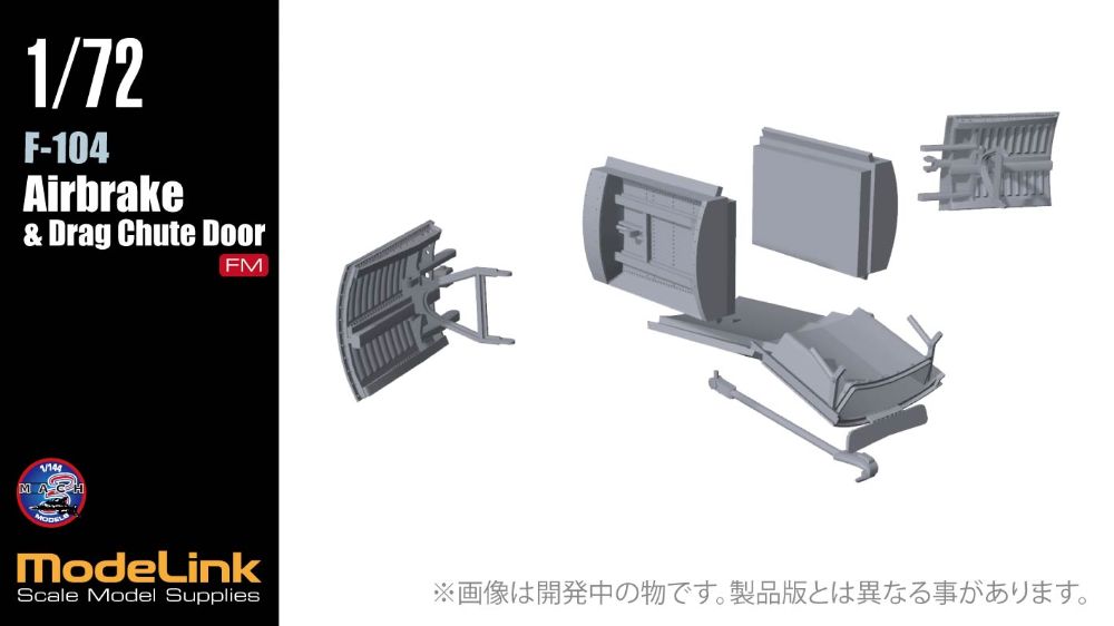 F-104のエアブレーキとドラッグシュートの収納庫セット。キットのパネルを切り欠いてはめ込むだけで開状態のエアブレーキ、ドラッグシュートドアが再現できます。FM社のF-104キット用。