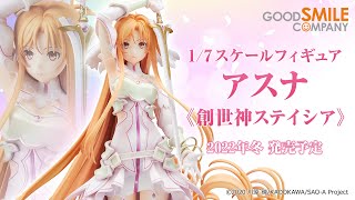 TVアニメ『ソードアート・オンライン アリシゼーション War of Underworld』より、《アンダーワールド》に《創世神ステイシア》として現界した「アスナ」を、公式イラストを元にスケールフィギュア化。繊細かつ大胆なロングヘアやふわりと広がるドレスなど精緻に再現された造形に是非ご注目ください。ヘッドドレスや鎧部分には上品なパール感のある彩色を施しています。台座には、降り立つ水面をイメージした波紋の造形・グラデーション塗装を加えました。女神のごときアスナを是非お手元にお迎えください。
