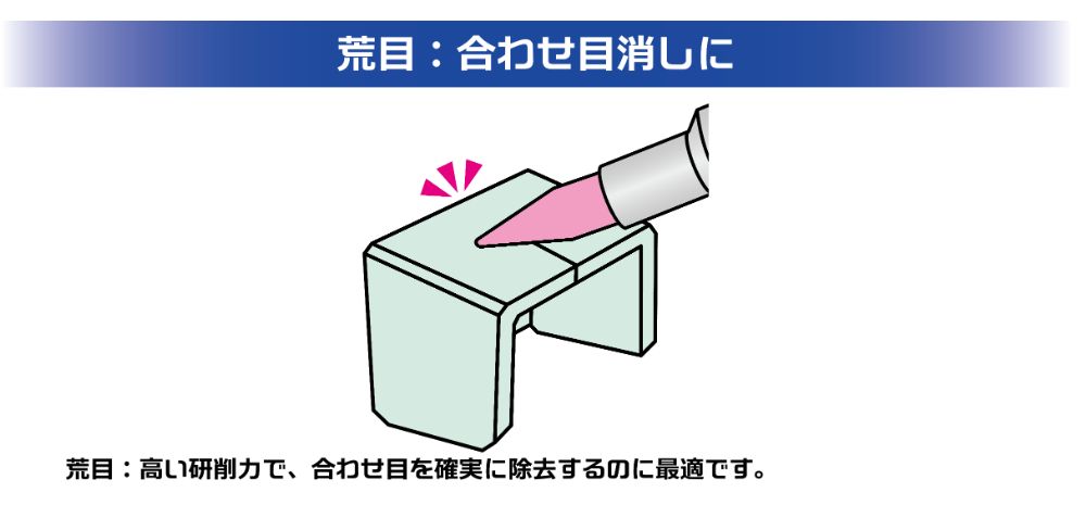 荒目は切削力が強く、中目に比べて研磨時間を短縮でき、 成形にも適しています。