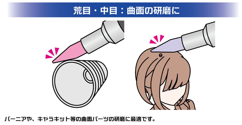 バーニアや、キャラキット等の曲面パーツの研磨に最適です。