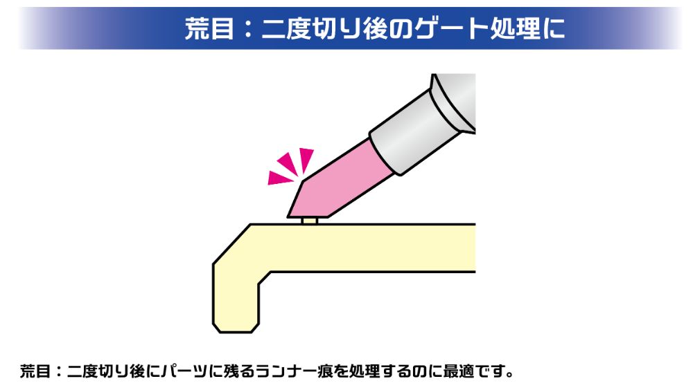 二度切り後にパーツに残るランナー痕を処理するのに最適です。