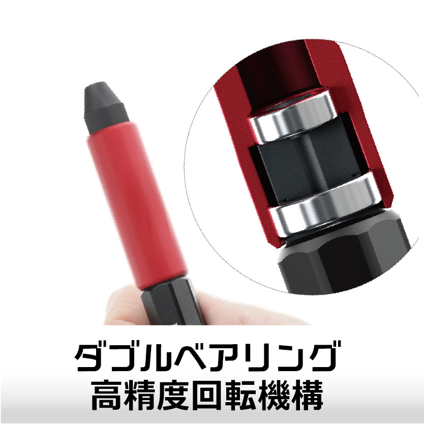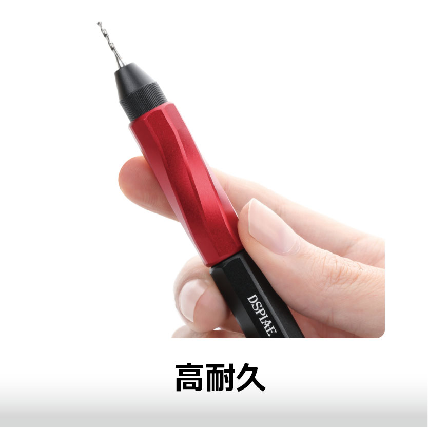 「ハンドピンバイスMobius」はドリルビットの空回りを防止する鍵穴構造とダブルベアリング高精度回転機構を搭載した、高耐久・高精度かつ安定した穴あけを行うことが出来るピンバイスです。チャック下部に鍵穴のロック溝を設け、専用のタングステン鋼フラットシャンクドリルビットを挿入すれば、鍵と鍵穴のような噛み合いに。優れた防滑性能が、高い安定性を実現します。内部には高精度のダブルベアリングを採用。中心軸のブレのない構造で、ハンドスピナーのようなストレスのない滑らかな動きに仕上げました。グリップは指のカーブに沿った螺旋曲面形状を採用し、より力が伝わりやすい設計に。加えて、CNC一体削り出しアルミ合金ボディ成形を行い、本体後部にはドリルビット収納マグネットを内蔵。持ちやすさ・使いやすさ・耐久性にも優れています。また、専用タングステン鋼フラットシャンクドリルビットも同時発売。1.0mm〜3.1mmまでの実用サイズを網羅した3種類のセットを用意しました。