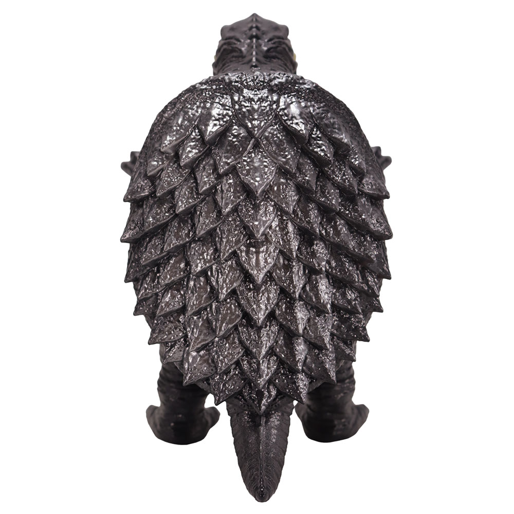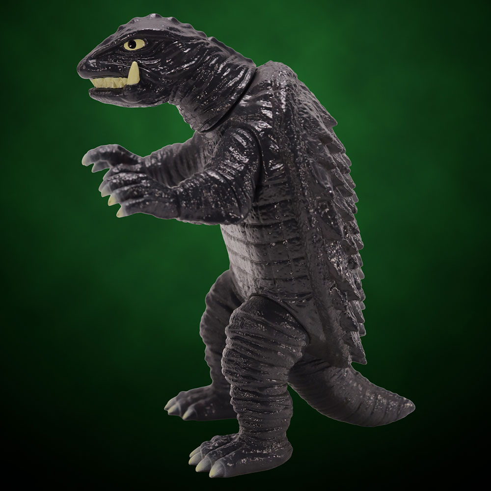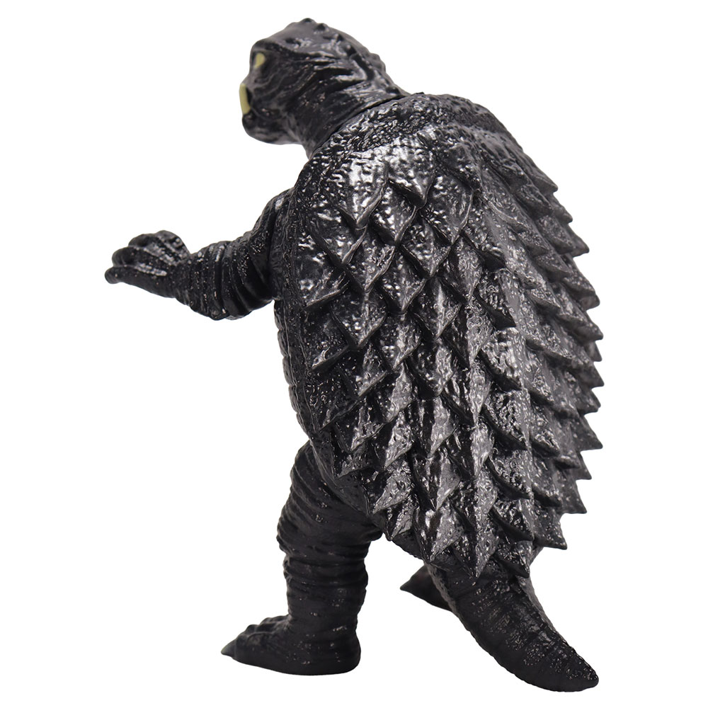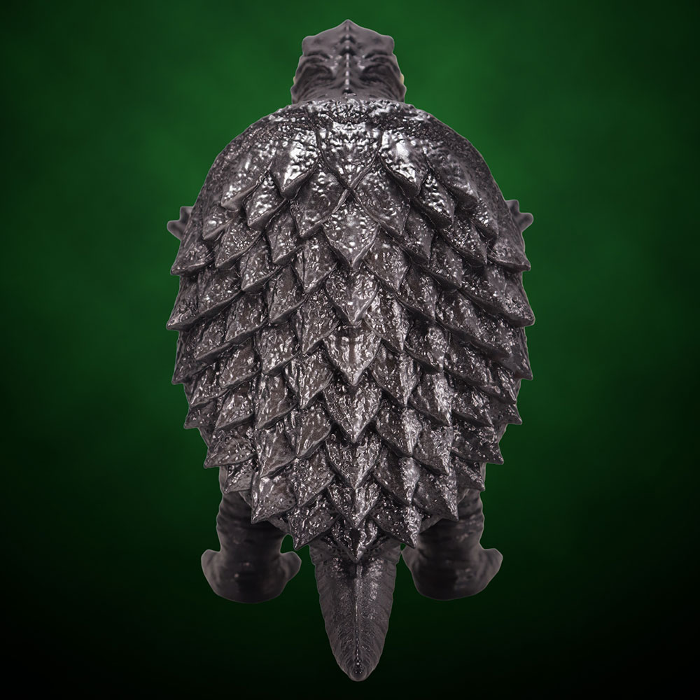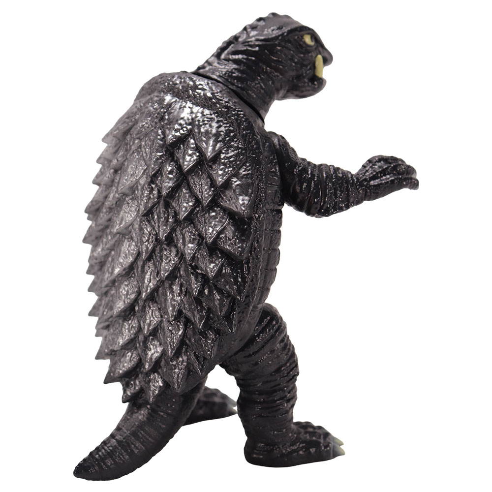 昭和ガメラの特徴を捉えた顔・手足の造型や、折り重なった甲羅のディテールなど見ごたえのある造型に、「スタンダードVer.」ではガメラの体色をイメージしたダークグレー成型に、各部の彩色とレトロソフビらしいシルバー吹きが施された、まさにスタンダードな仕上がりとなっています。