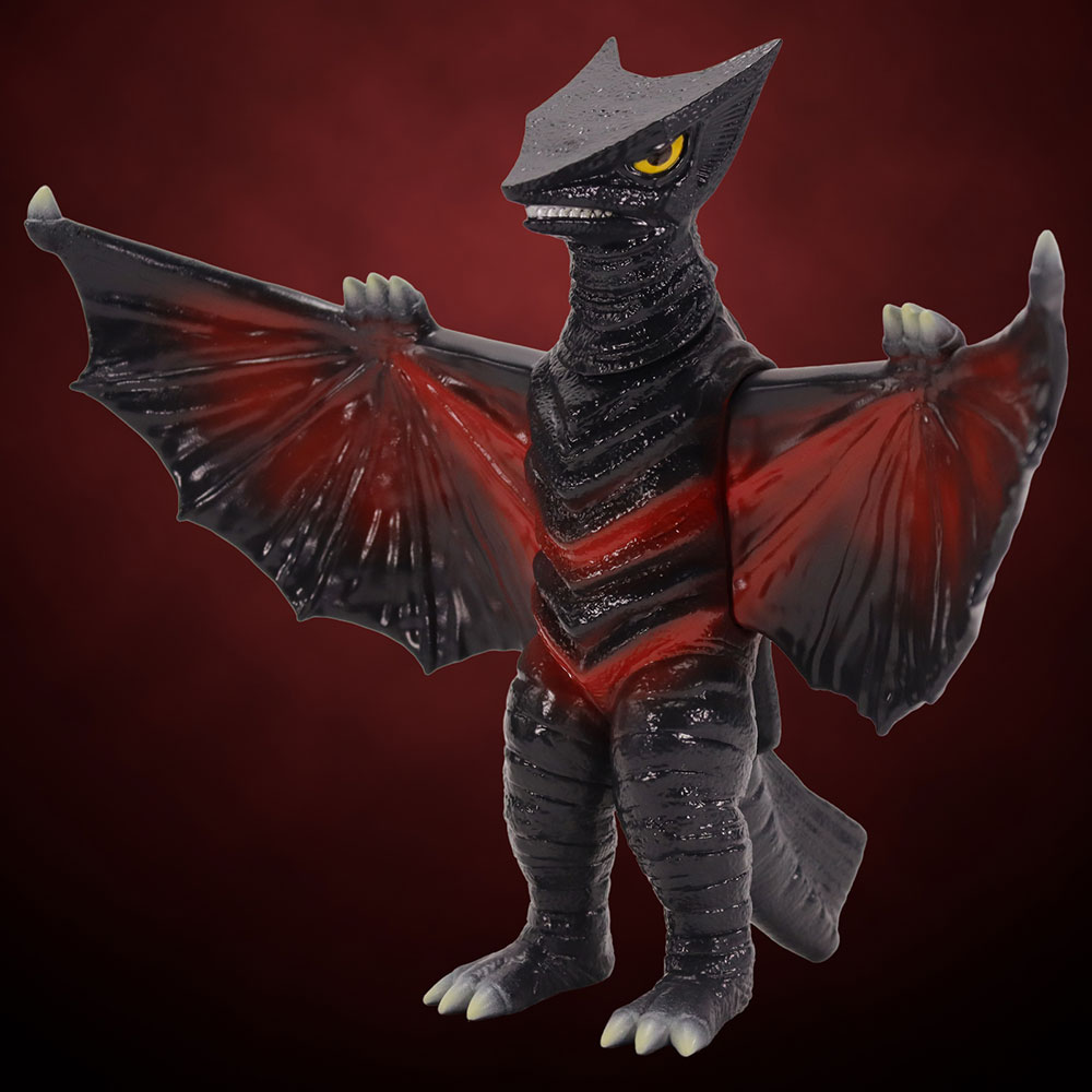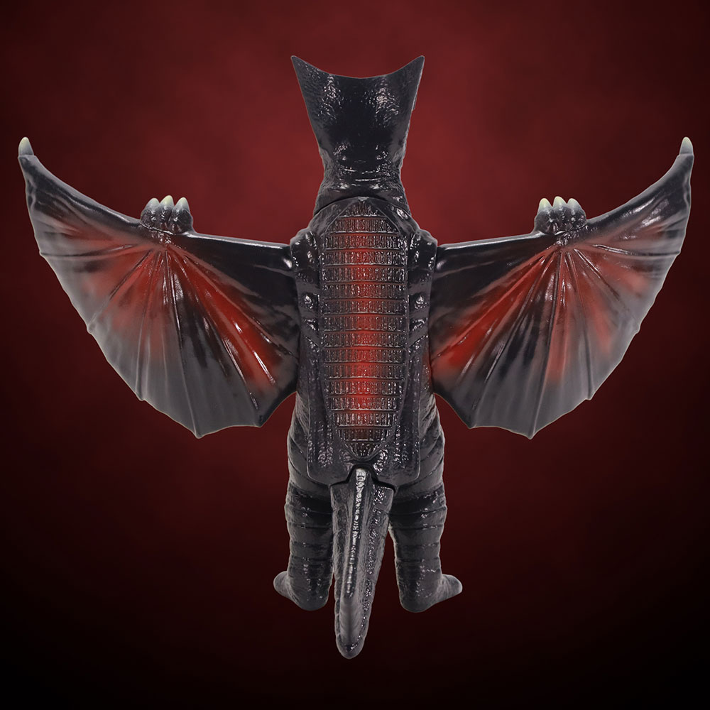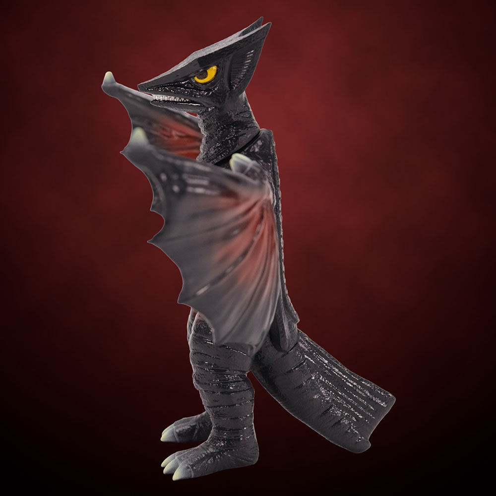 三角状の頭部や体表の特徴を捉えたディテール、前にしなるようなポージングを加えた翼など見ごたえのある造型に、「スタンダードVer.」ではギャオスの体色をイメージしたダークグレー成型に赤いラインが彩色された、まさにギャオスらしい一品に仕上がっています。