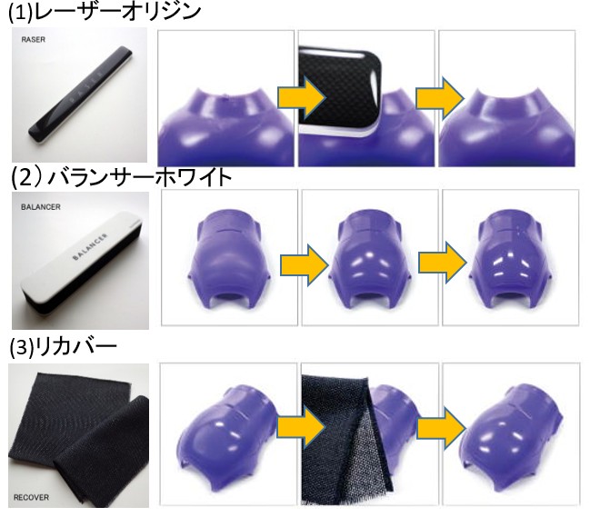 (2)細かいマット地を作る研磨用の「サンドペーパー面」と光沢磨き上げ用の「シャイナー面」の両面で構成された『バランサー ホワイト』