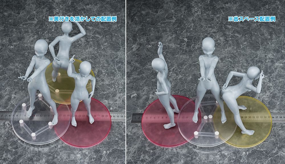 Base Floatはフィギュアのベース下に設置する高さ可変式スケルトン構造。主張せず自然にフィギュアを持ち上げ、複数のベースを重ね合わせ、新たな展示空間を創出します。