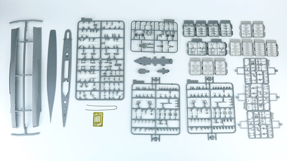 キットはフルハルモデルですが、船体に加工をしてキットに付属する洋上モデル展示用の船底パーツを使用することで、洋上モデルとして完成させることも出来ます。