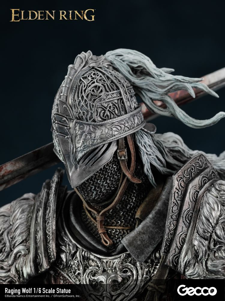 アクションRPG『ELDEN RING』より、戦鬼装備を纏った「褪せ人」が1/6スケールスタチューとして顕現。 吹き荒れる向かい風の中、白銀の鬣をなびかせ、何人たりとも寄せ付けない威圧感を放ちながら荒野 を征く姿を立体化。