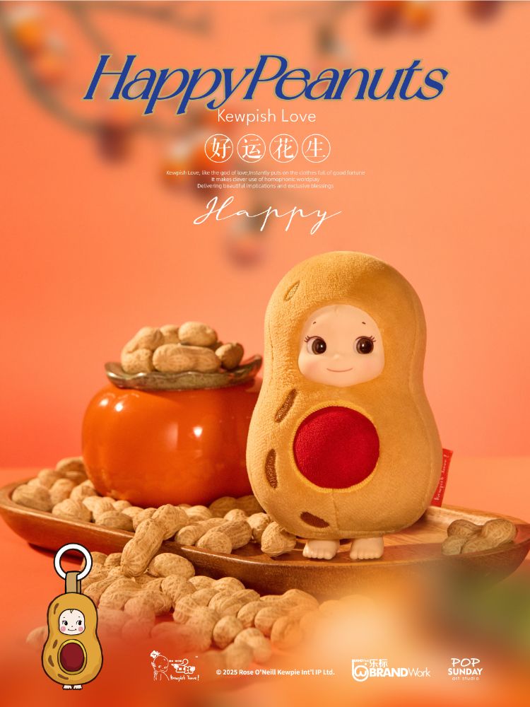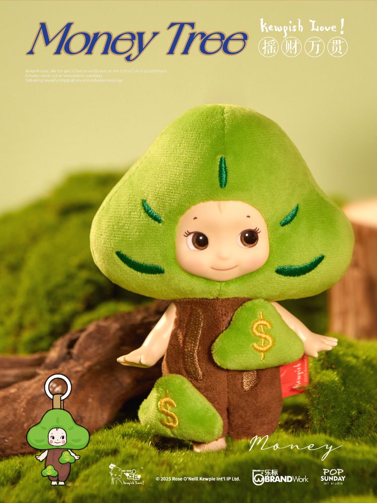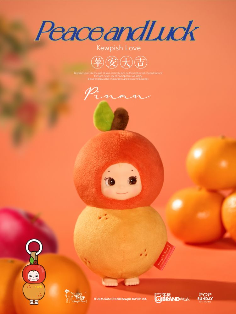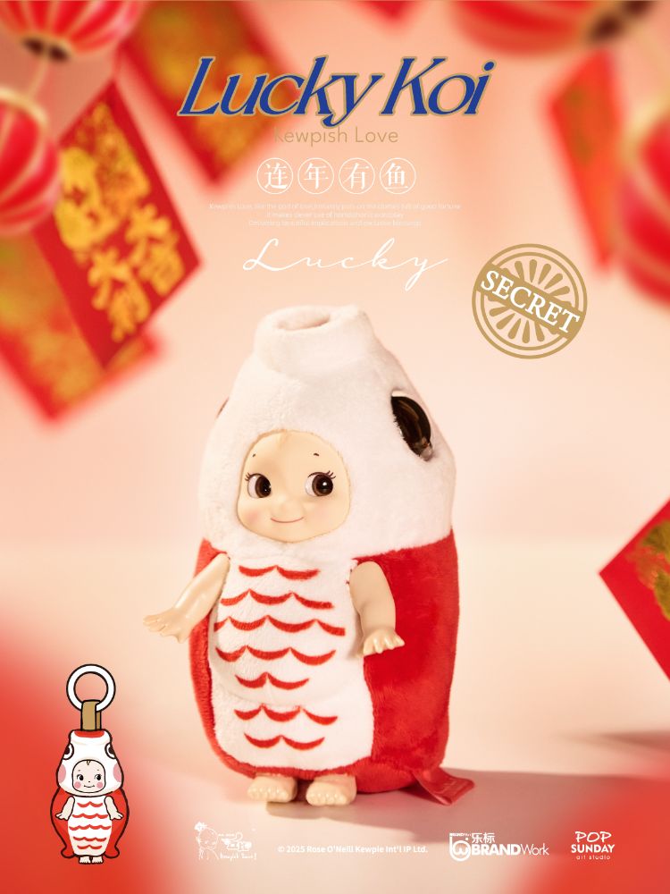 招き猫や桃、松や鯉などをモチーフにしたふわふわの着ぐるみに包まれたキュートな人形です。