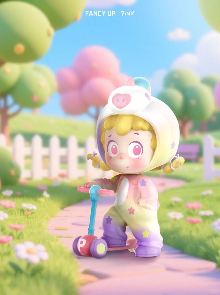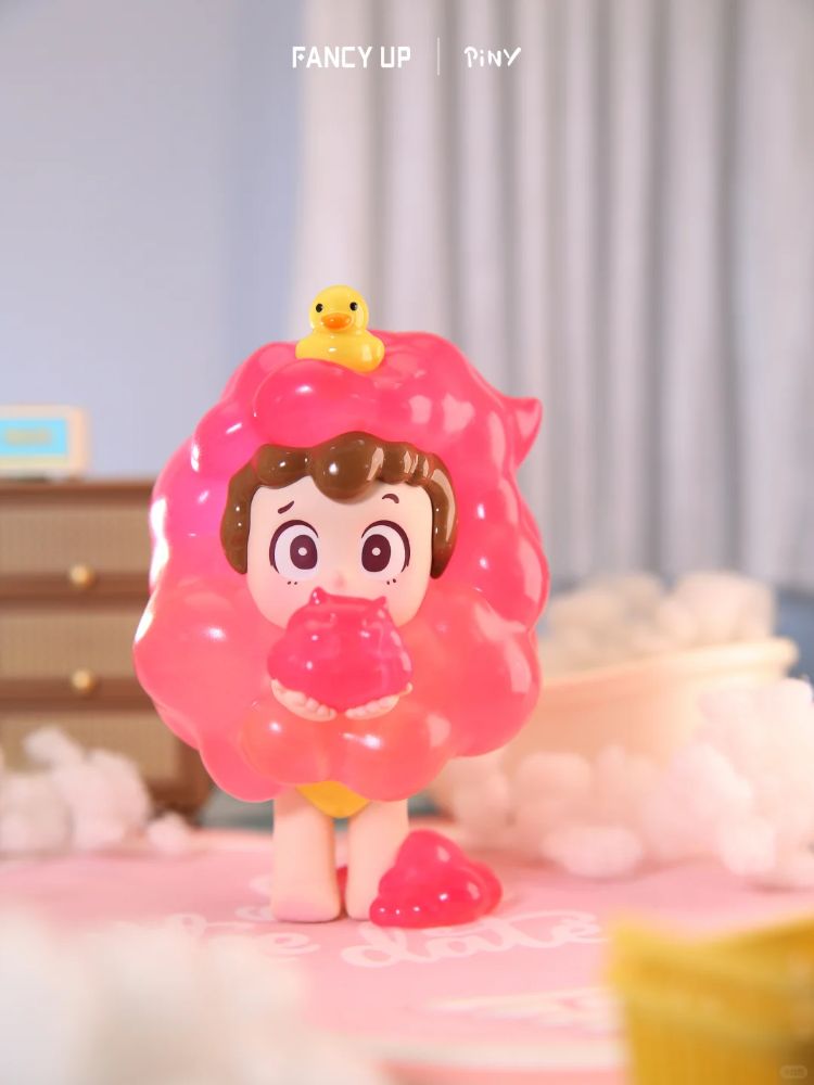 たとえば 「Milk Bomb Mask」 では、ミルクカラーのワンピースにミルクモチーフのヘアピンを合わせ、ハート型ストローでドリンクを飲みながらテレビを眺めるPINYのリラックスした姿を表現。また、「Toy Doctor」 では、ツインテールを結んだPINYが、破れてしまったウサギのぬいぐるみを前に、涙を含んだ瞳で修復を決意する、愛らしいシーンが描かれています。