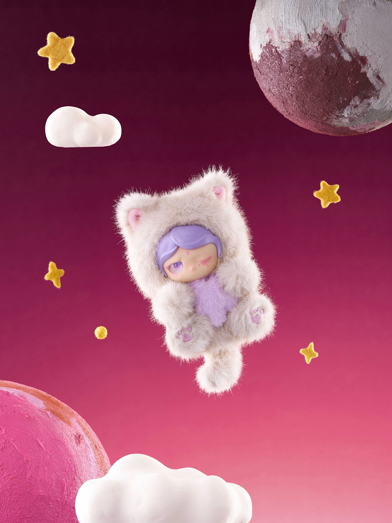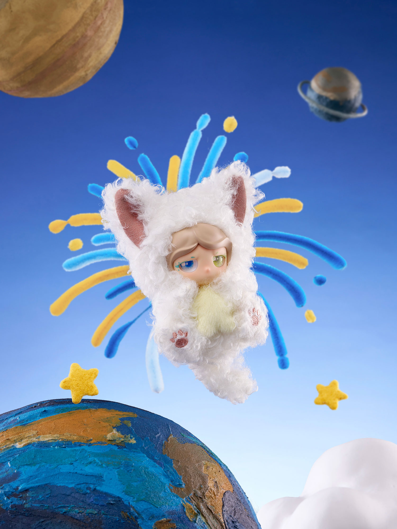 宇宙をテーマにしたファンタジックなデザインで、見ているだけで心がほっとほぐれる癒し系ぬいぐるみです。立ち耳・垂れ耳など個性豊かなキャラクターが全7種展開。どの子に出会えるかは、開けてからのお楽しみ。