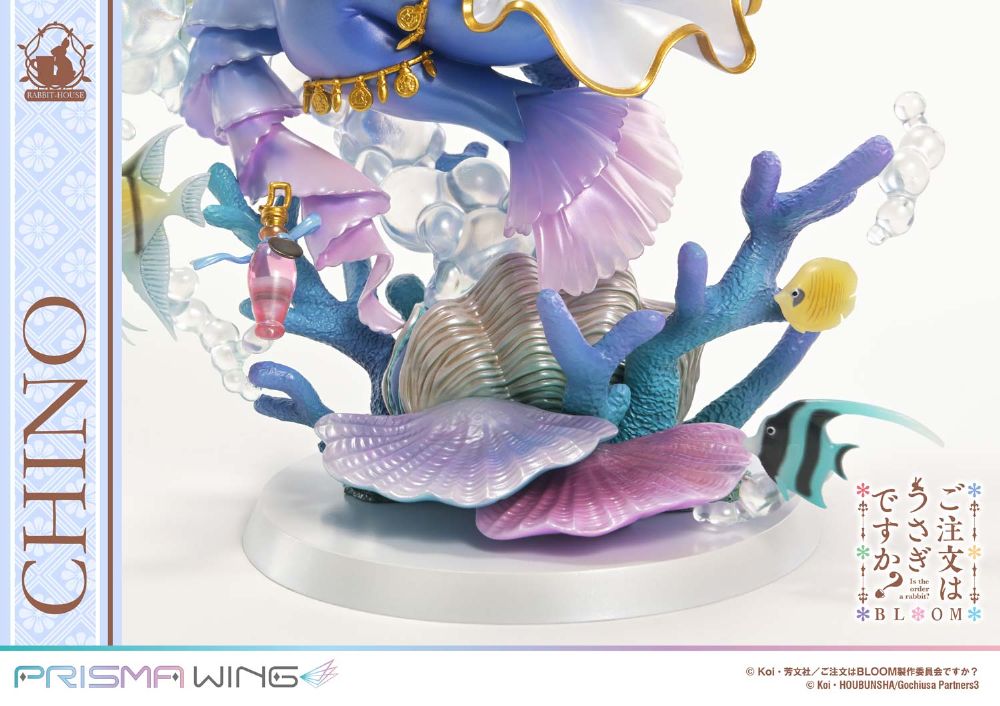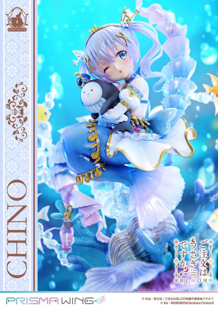 『ご注文はうさぎですか? BLOOM』から、人魚姫をモチーフにしたイラストの「チノ」が初のフィギュア化です。表情やポージングはもちろん、色鮮やかな海の世界も細部まで丁寧に造形しました。いつもはクールな彼女が見せる童話の装い、花盛りのかわいさでお贈りします!