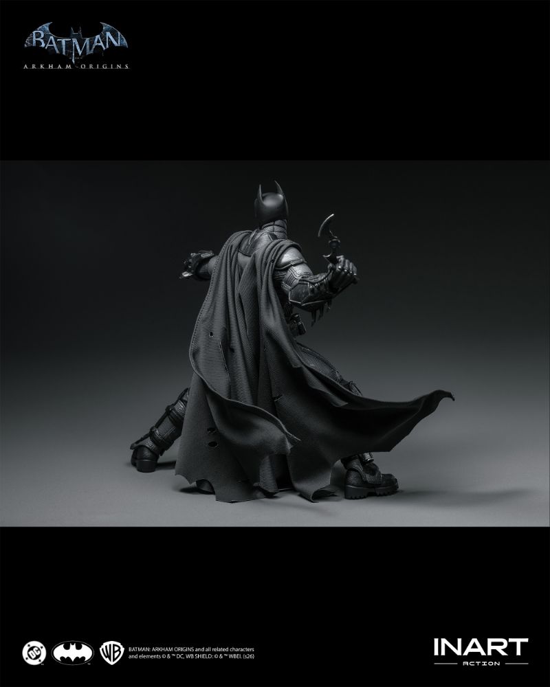 本フィギュアは、『バットマン:アーカム・ビギンズ』におけるバトルダメージを受けたバットマンの姿を忠実に再現し、ゲーム内モデルの細部に至るまで高精度な造形で表現しています。