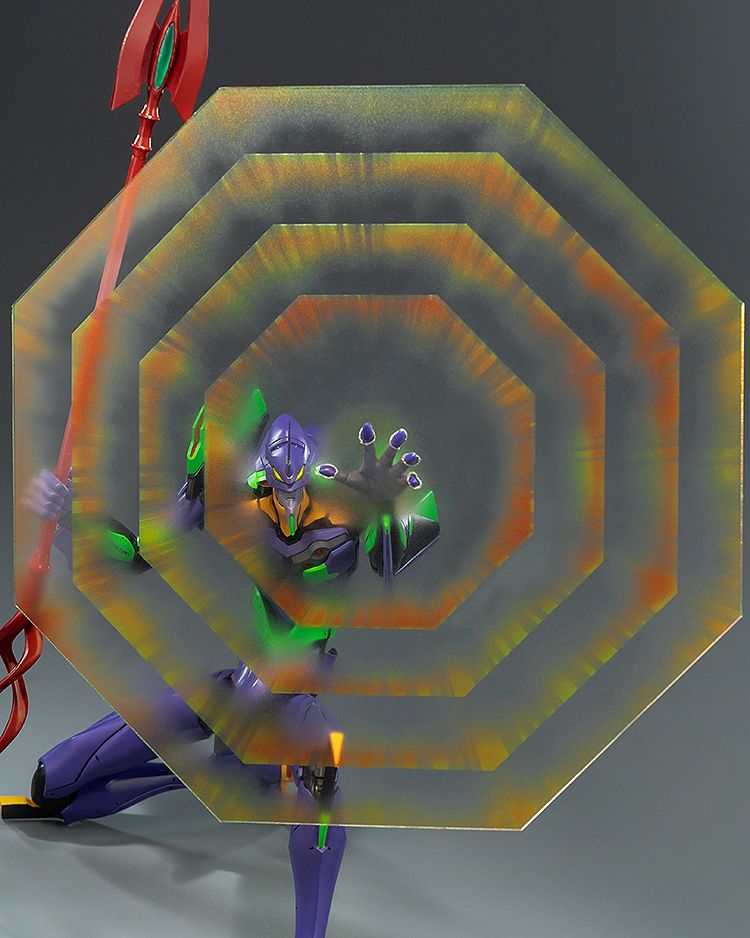 初回生産特典:A.T.フィールド衝突エフェクトパーツ(スタンド付属)×1、両面仕様の背景シート(NERV本部/ミサトの部屋)×1