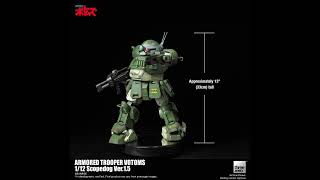 2017年にリリースされた最初の1/12 スコープドッグと比べて、このVer.1.5では新たな塗装表現とアップグレードした関節構造をフィーチャー。肩のボールジョイントと踝の関節はダイキャスト製金属パーツにアップグレードされ、また肩関節のソケットも耐久性を向上させたものになっています。
