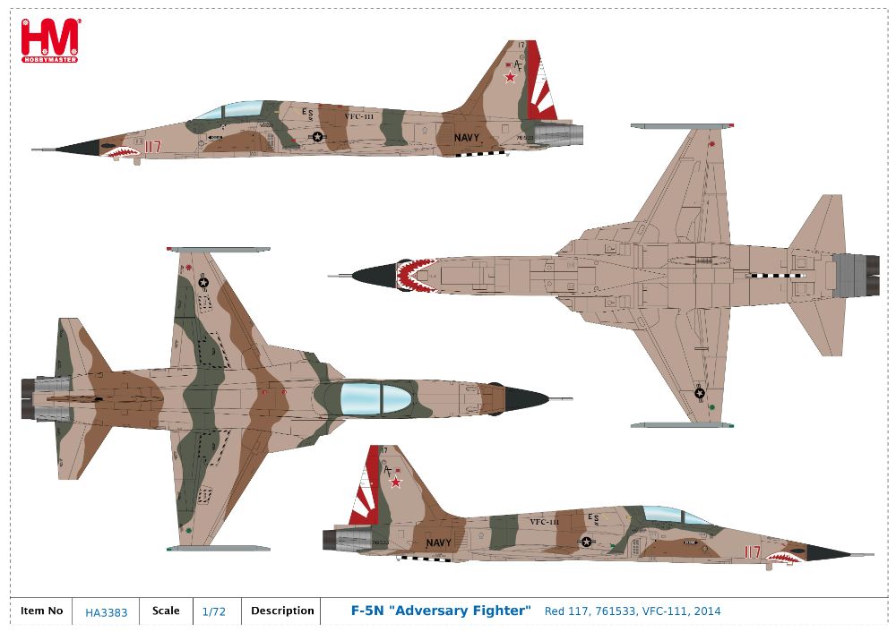 1/72 F-5N Adversary Fighter Red 117, 761533, VFC-111, 2014