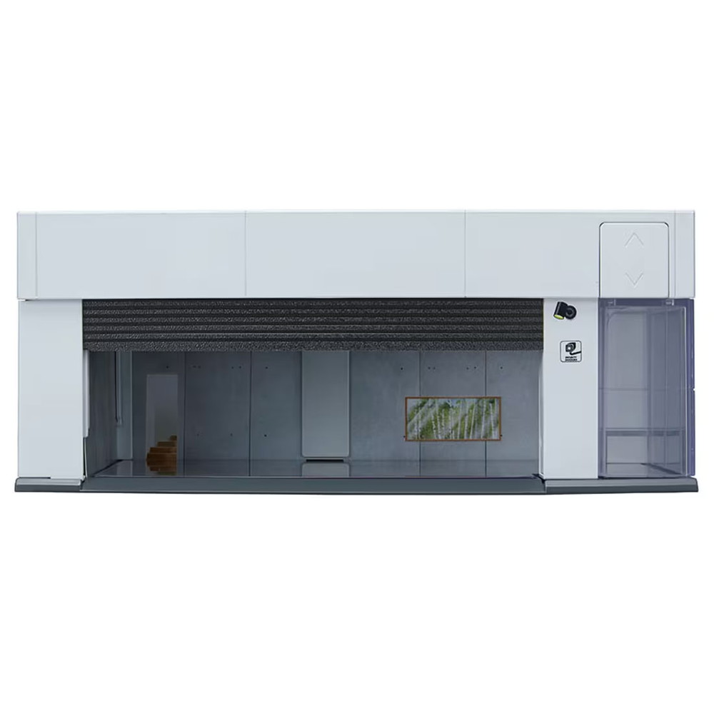 コレクションをスタイリッシュに飾れる、ガレージに新色が登場。 操作パネルをタッチすると、電動シャッターが本物のようにゆっくり開閉し、ガレージ内が自動で点灯/消灯します。 内装デザイン紙 3セット付属。 ※トミカ(ミニカー)は入っていません。