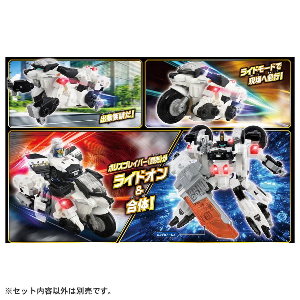 ・「デカライドアーマー白バイ」と別売りの「ポリスブレイバー 日産 NISSAN GT-R パトロールカー」等のジョブレイバーが搭乗特装合体!
