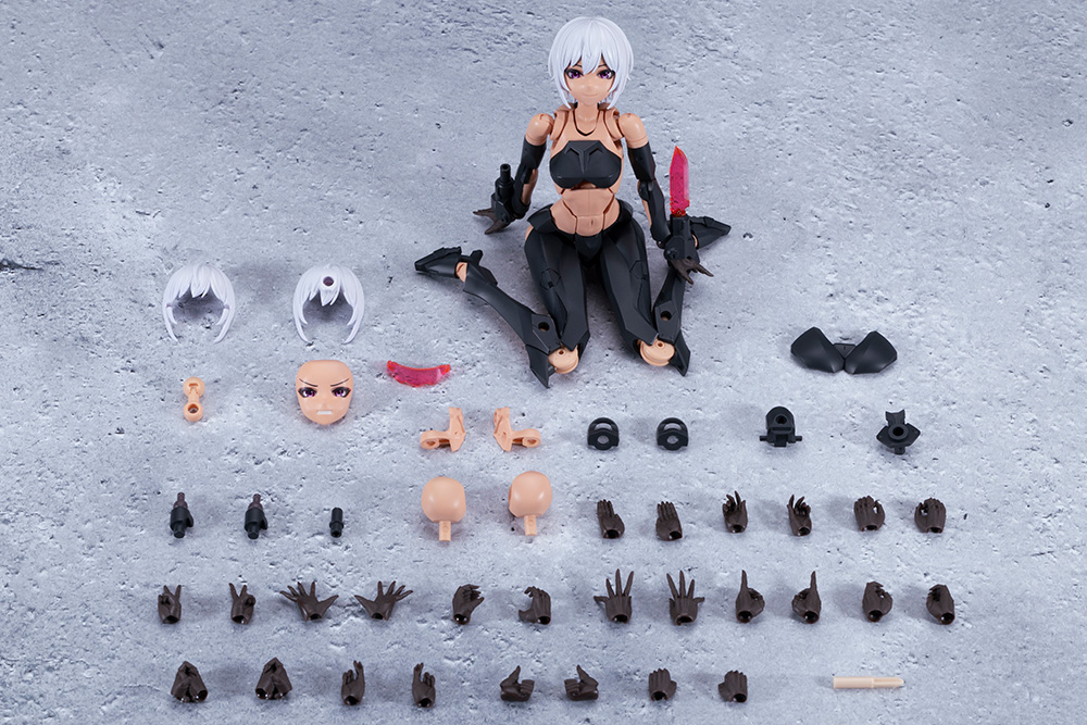 ネイキッドフェイスは女性型アナザーのマスクや創彩少女庭園の表情パーツと互換性があります。また、前髪パーツは女性型アナザーのバイザーパーツや一部の創彩少女庭園キャラの前髪パーツと互換性があり生身とメカを組み合わせたカスタマイズが可能。首のボールジョイントは5mm径となっており他シリーズと組み合わせることができるほか、6mm径ボールジョイントを使用することでメガミデバイスの頭部を取り付けることが可能です。