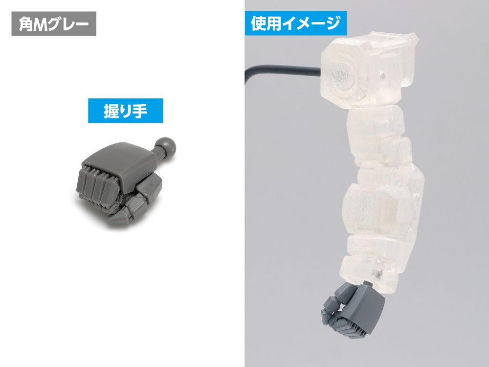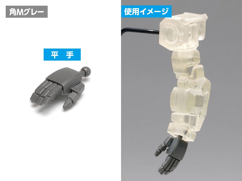 【ご注意】本製品は、接着・加工作業をともなう【上級者向け】モデルです。組立には市販の[プラスチックモデル用接着剤]、または、[瞬間接着剤]をご使用ください。各手首の根元は、使用するキットにあわせて、加工・調整してください。[武器持ち手]・[銃持ち手]は、使用するパーツやグリップにあわせて加工・調整してください。