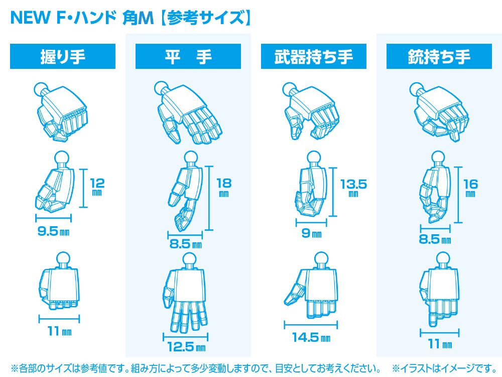 - ●セット内容 [握り手]・[平手]・[武器持ち手]・[銃持ち手] 左右 各1セット