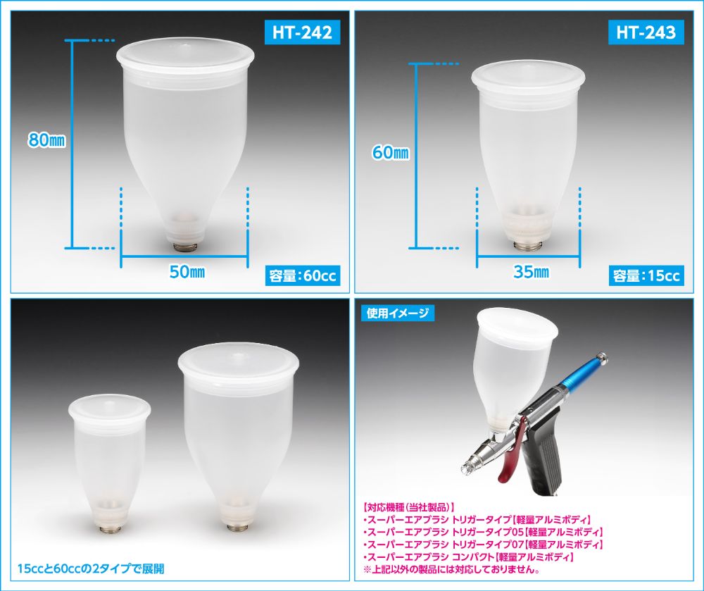 軽量樹脂ボディのエアブラシ用塗料カップ!2サイズ同時展開!