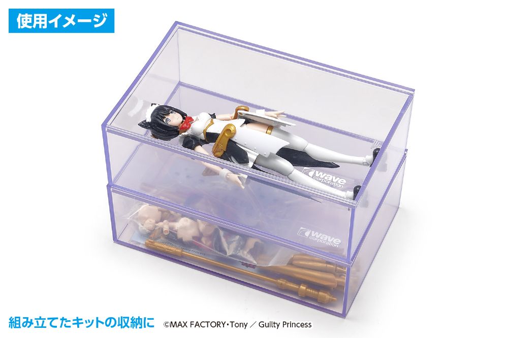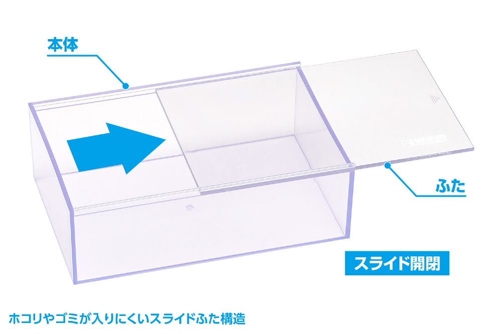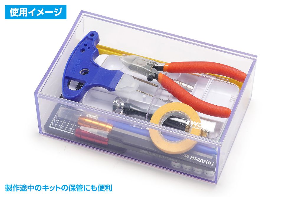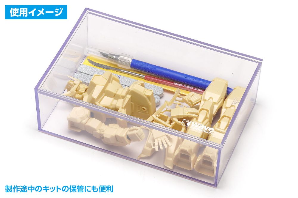 15cmサイズのキャラクターモデルや、1/32カーモデルなどを収納できるプラスチックケース。中身が見える透明ボディ。ホコリやゴミが入りにくいスライドふた構造。ケース同士は積み重ね可能で、製作途中のキットの保管などにも便利。細かなパーツの保管や工具入れなど、様々な用途にお使いいただけます。
