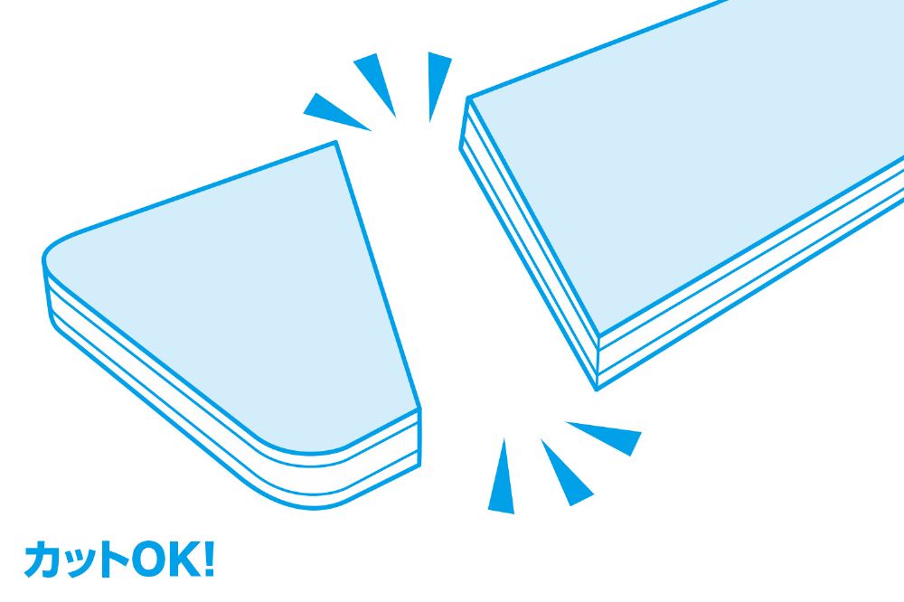 ●ご注意:SOFT2の切り出しに刃物を使用する際は、ケガをしないように注意してください。HARD2は、全体が硬質な素材でできているため、お好みの形に切り出すことはおすすめできません。
