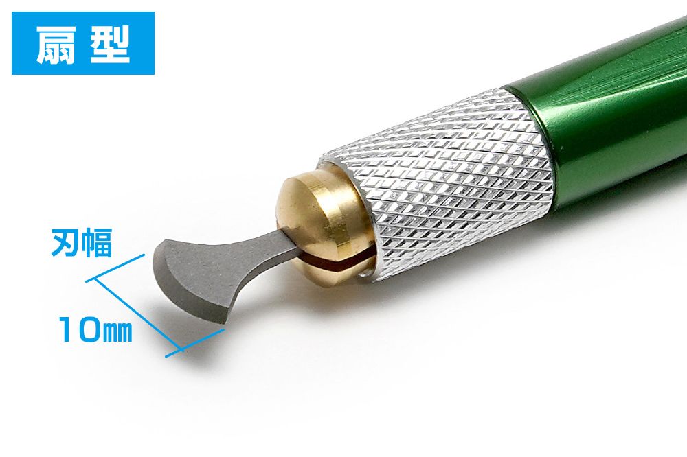 プラスチックやレジンパーツなどの切削に便利な3種類の小型スクレーパーと専用グリップのセット。スクレーパーを専用グリップに装着し、引っかくように削ってゆく切削工具です。Rラインの刃先が対象物に“点”で当たるので、ピンポイントの削り作業が可能。また、刃のRライン全体を使い、まるくへこんだ凹状態に削っていくこともできます。※説明内の各サイズは参考値です。