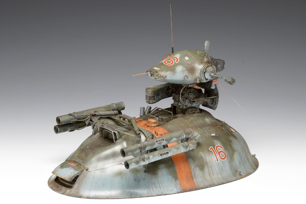 ホバー駆動の装甲車両に感知ユニットであるノイスポッター頭部を搭載した無人偵察機オスカル。これまでに、リニアガン装備の後期型、レーザーガン装備の初期型と製品化してきましたが、今回新たにNINJAの頭部とロケットランチャーが追加となったオスカルの強行偵察型が登場します。その名は「シュトゥルムフォーゲル」。後方支援能力を高めるために野戦改修キットである追尾ロケット4門を増設、頭部にはNINJAの高性能索敵シーカーを装備した迫力のシルエットとなっています。