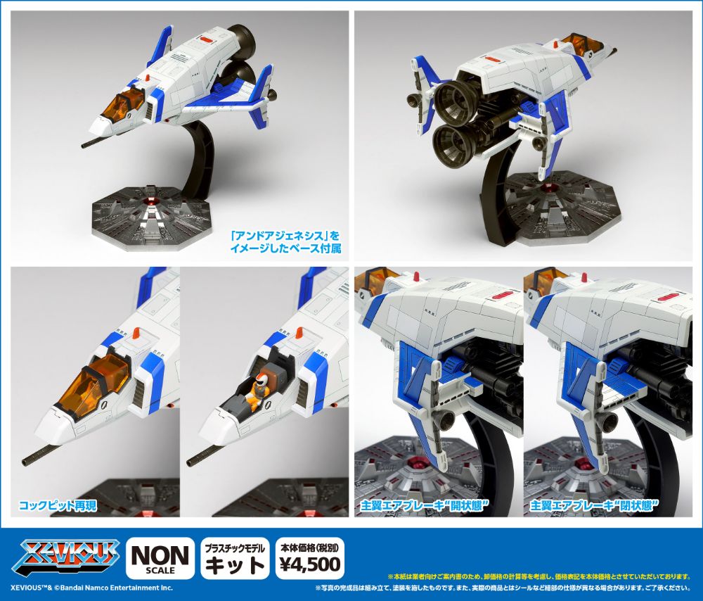 1983年に稼働を開始し、ナムコシューティニングゲームの傑作として絶大な知名度を誇る「ゼビウス」。その本作よりプレイヤーが操作する自機『ソルバルウ』がプラモデルとなって登場です。キットは接着剤不要のスナップフィットタイプ。本体は設定のカラーリングに近いパーツ分割と付属のマーキングシールにより、組み立てるだけで手軽にゲーム内のイメージを再現できます。