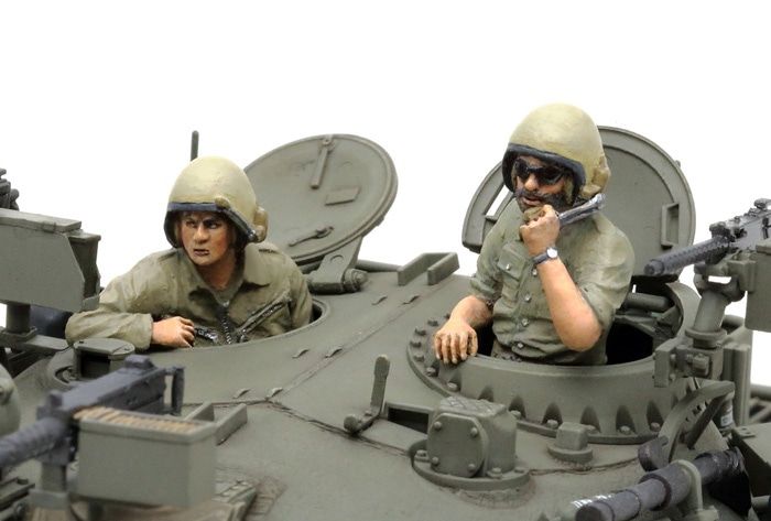 【 強化された武装が迫力十分 】 1967年の第三次中東戦争後、イスラエル軍はアラブ各国軍から鹵獲したT-55戦車をティラン5と名付け、自国の貴重な戦力として活用しました。多くの車輌は主砲をオリジナルの100mm砲から西側標準の105mm砲に換装し、主砲防盾上のM2重機関銃やコマンダーおよびローダー用機関銃を増設。砲塔右側に追加された雑具箱などが特徴です。1973年10月の第四次中東戦争で戦車部隊の一翼を担って奮戦。その後1980年代始めには第一線から退くものの、訓練や後方任務に使用され、レバノン紛争にも派遣されました。