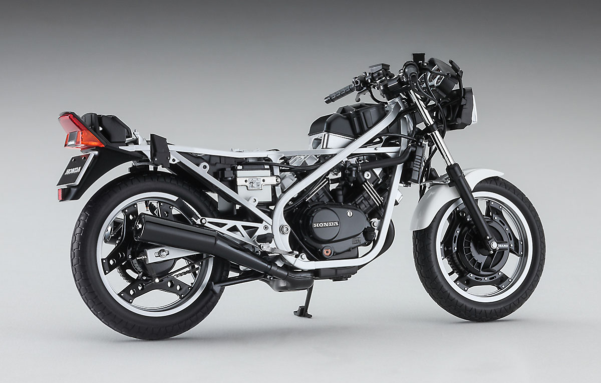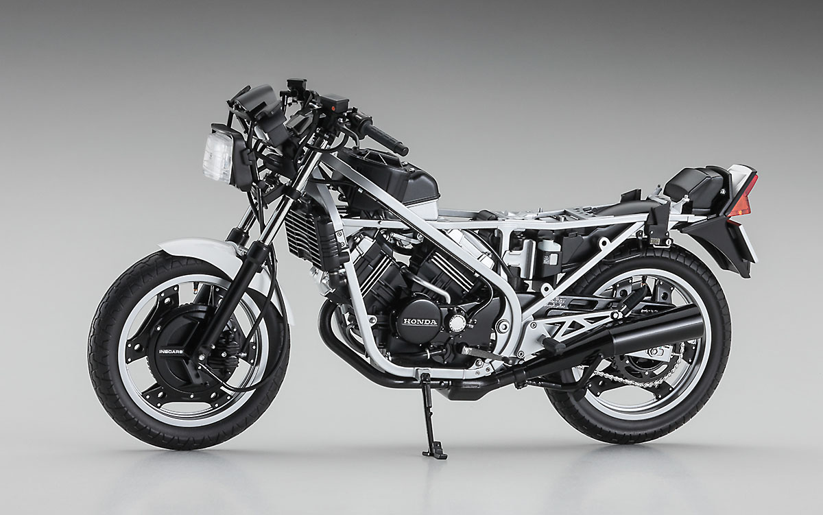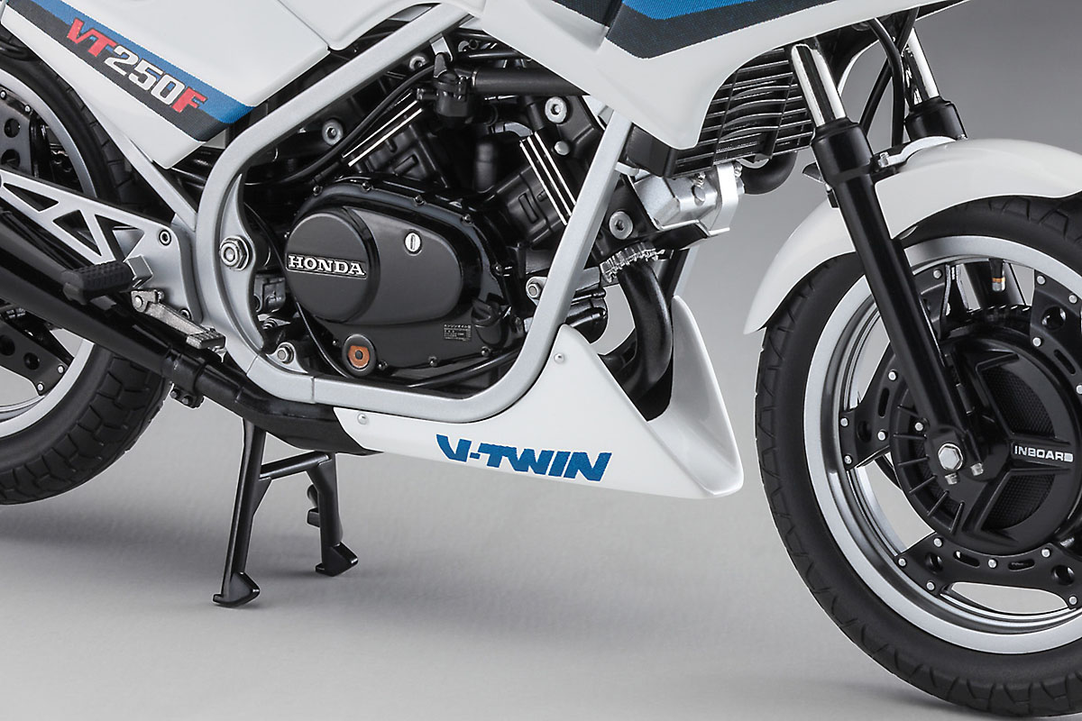キットは、1984年の2代目VT250Fを徹底した実車取材をもとに完全新金型で再現。