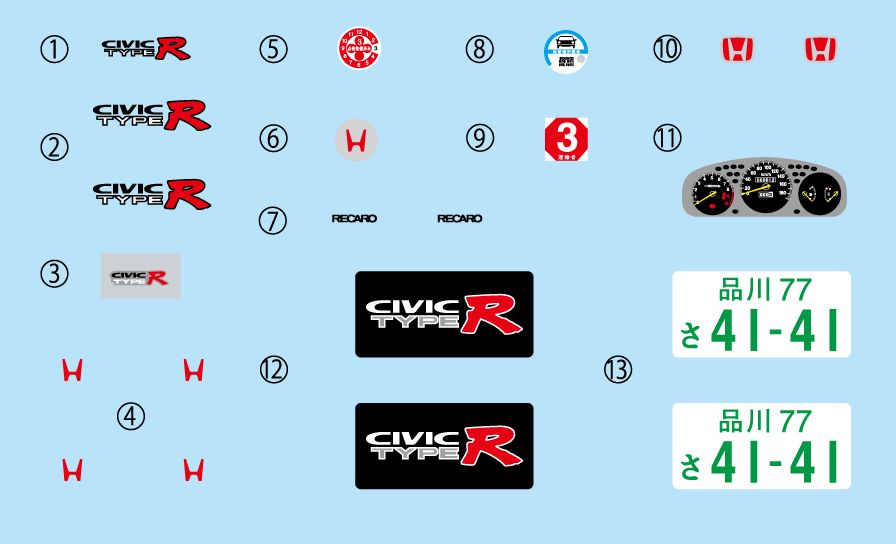 □デカールには各種ロゴ、ナンバープレート、メーターパネル類を収録。