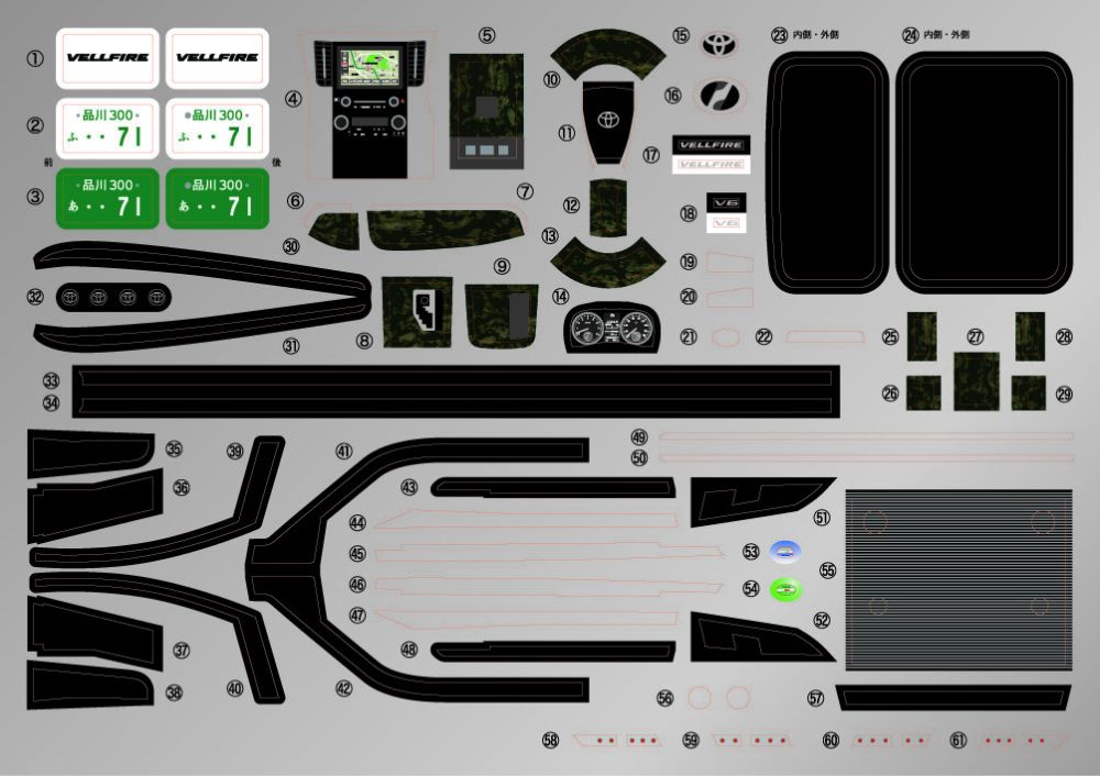 □リアハッチの「VELLFIRE」「V6」のマークは印刷済みにて再現。