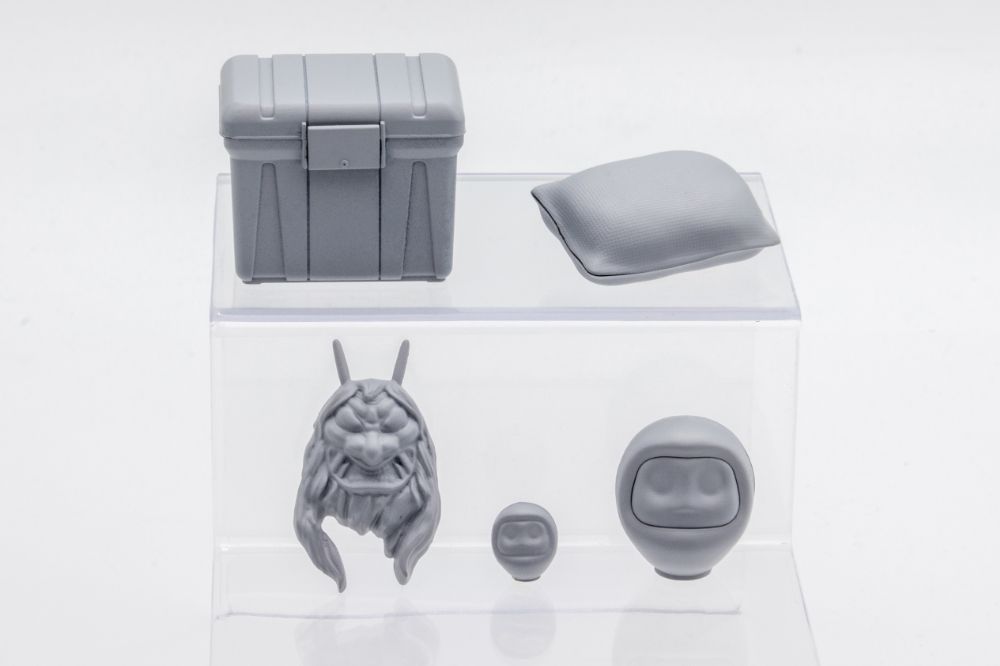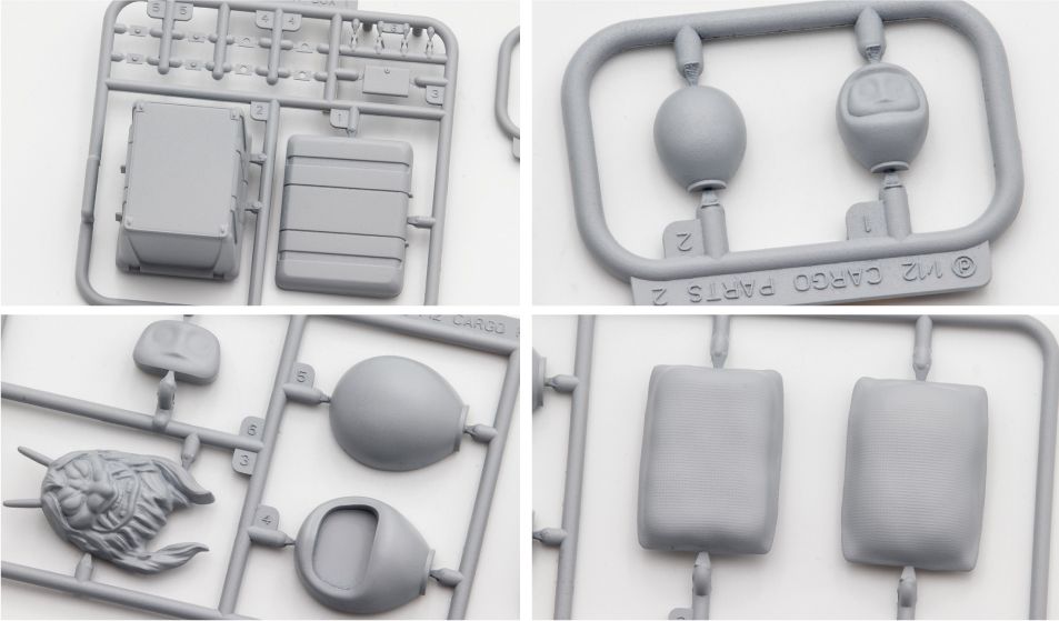 □成形色は塗装を考慮したライトグレー。収録パーツはリアボックス、米袋、伝統行事で使用されるお面、縁起物の置物(大・小)の多彩なラインナップで構成。