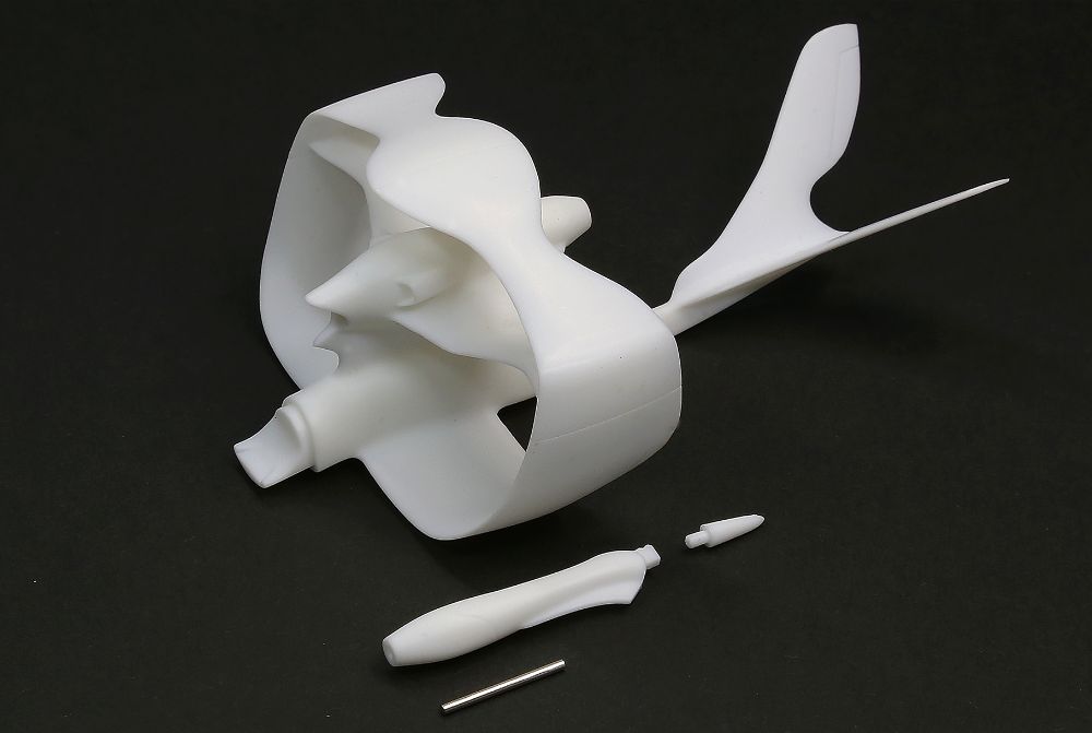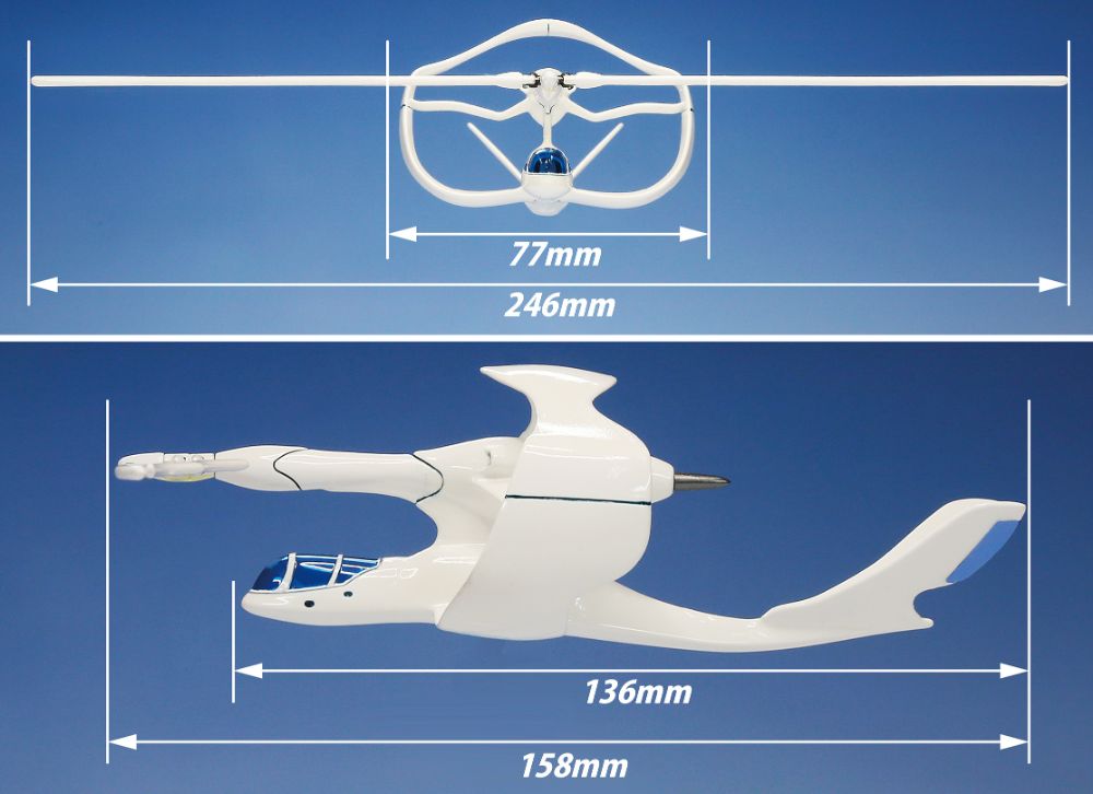【浩紀と拓也の思いをかたちに】 ヴェラシーラを作り上げた浩紀と拓也に敬意を表して、各パーツを組み上げる工程も楽しめるキット形式での模型化です。 プロペラの直径は約25 センチ、機体の全長は約16 センチ。機体部分がちょうど両手の手のひらにすっぽり収まるサイズ感で完成します。 【 独特のスタイルを一体成形で】 円形の翼と、主要部とエンジン部の二層構造になった胴体がヴェラシーラの特徴ですが、これは組み立てが難しくなりがちなスタイルと言えます。そこで、この主要部分にレジン樹脂による一体成形工法を採用しました。一般的なプラスチックモデルでは多くなりがちなパーツ点数を大幅に抑え、最小限の組み立てでヴェラシーラの再現を可能にします。 【パーツごとに最適な素材を選定】 機体を一体成形とするにはレジン樹脂が最適ですが、通常のプラスチック成形の方が良いパーツもあります。強度が必要なプロペラ、透明度や組み立て精度が必要なキャノピー周りなどは、プラスチックモデルと同じ金型を用いたプラ成形を採用しました。パーツごとに最適な特性を備えた素材を用いることで、リアルかつ精密な再現と組み立てやすさの両立を実現して、ヴェラシーラの美しい姿をお届けします。 【飛行状態の美しさを優先したスタンドディスプレイモデル】 特徴的なスタイルを楽しんでいただくために、飛行状態メインのディスプレイモデルとしました。専用のディスプレイス タンドも用意して、二重反転式の大きなプロペラから、円形の翼、二層構造の胴体まで、その斬新な機体構成を立体ならではの解像度でお届けします。 【機体主要部は、胴体から円環翼まで完全一体成形】 □独特のフォルムは、高精度レジンによる完全一体成形! □胴体部分は、高精度レジン樹脂製。(無発泡ウレタン樹脂製)円形の主翼からV 字型の尾翼まで完全一体成形。箱を開けた瞬間からヴェラシーラの姿が浮かび上がります。 【2 種・計4 枚のプロペラパーツ】 □コクピット周辺とプロペラパーツは、通常のプラキットと同じ感覚で組み立て可能です。 □プロペラは、回転状態と、水平位置での固定状態、それぞれを専用のプラパーツとしました。 □強度の高いABS 樹脂で左右一体成形。 □金属シャフトパーツを中心に通すことで、完成後も差し換えが可能。回転状態の方は、スムーズな回転も楽しめます。 【プラパーツとレジンパーツの特性を最大限に活かした作りやすい構成】 □キャノピーとディスプレイスタンドは、透明度の高いプラ成形。スタンド部品のクリアブルーが、白い機体を引き立てます。 □透明度や組み立て精度が必要なコクピット周辺は、一般的なプラキットと同じ金型を用いたプラ成形(PS 樹脂/ABS 樹脂)。 □キャノピーの成形色は透明度の高いクリアブルー。機首外壁と、コク □ピット内部は、ホワイト成形。作りやすさを追求したリアルかつ高精度な部品構成です。 【カラーリング再現用ステッカー付き】 □組み立てと塗装が必要な、レジン/ プラ複合素材キットですが、必要最小限の塗装で仕上げていただけるように、カラーリング用ステッカーも用意しました。 □キャノピー枠のホワイトと、主翼/ 尾翼の動翼部分のブルーは、塗装なしでも完成します。