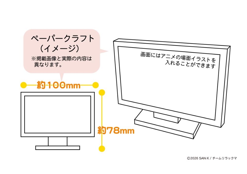 テレビを再現できるペーパークラフト用紙が付属したリラックマとキイロイトリのアニメイラストパッケージバージョン!