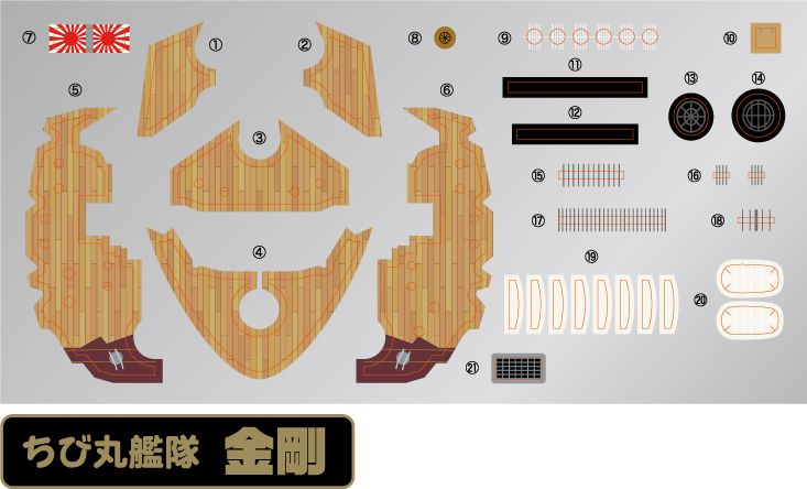 シールにはリアルな木目模様を再現した木甲板、21号電探、応急舵、防水布、ボートのキャンバスなどを収録。