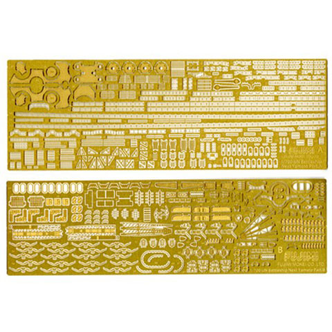 エッチングパーツには、手摺り、ラッタル、梯子、クレーン、煙突周り、13号電探、21号電探、方位測定器、防水扉、菊花紋章などを収録しています。