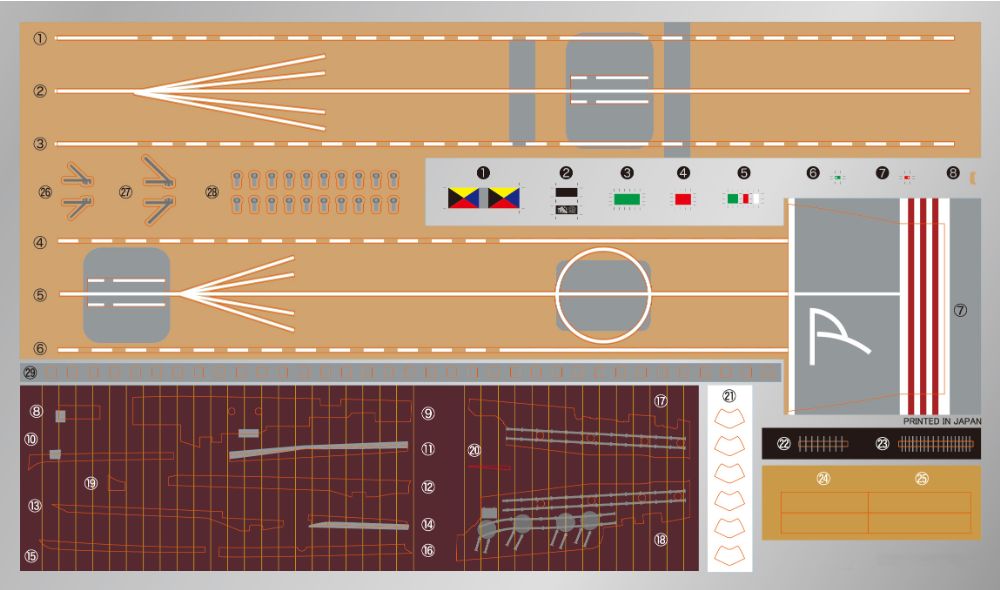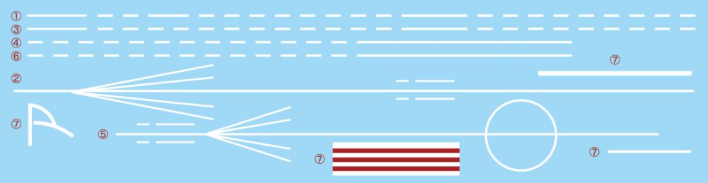 →①飛行甲板白線や小面積のリノリウム貼り床面などを収録したシール。