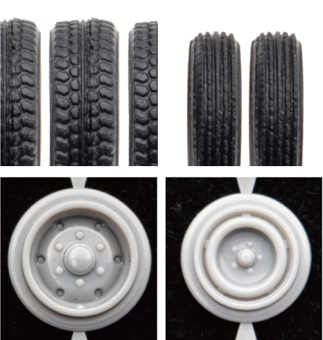 ・タイヤとホイールは一体化したプラ製パーツ(本製品ではさらに精密な再現性のタイヤ・ホイールが付属します)