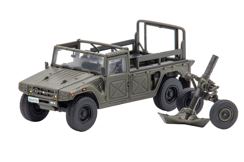 ・高機動車と異なり、車内補強ステーや弾薬積載補強桁など差異を専用部品で再現【重迫けん引車】
