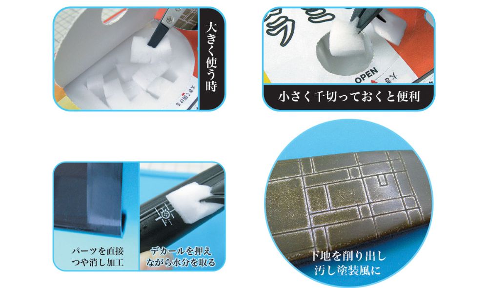 デカールを抑えながら水分を取ったり、軽い研磨で汚し塗装を再現したり!